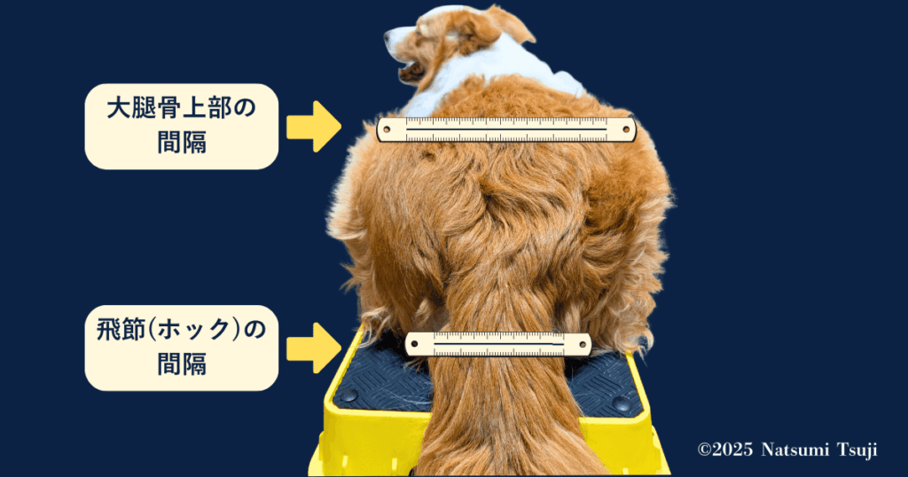 2. 左右の飛節(ホック)間の距離を計測する(測定値Ⓐ)