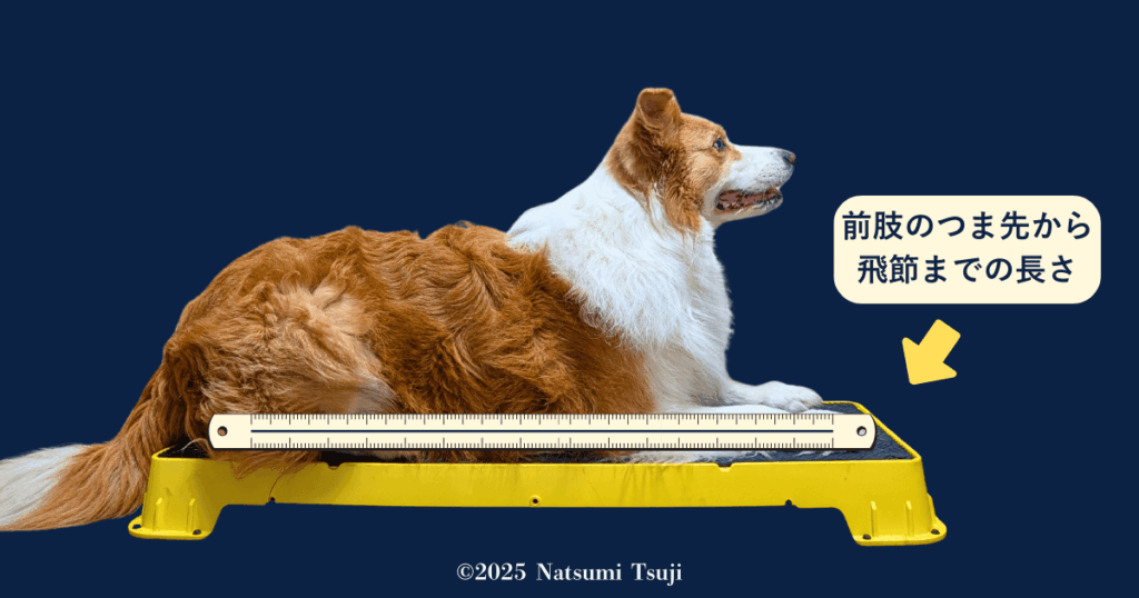 ※オスワリをした場合の「前足の指先→飛節」までの計測(測定値Ⓓ)